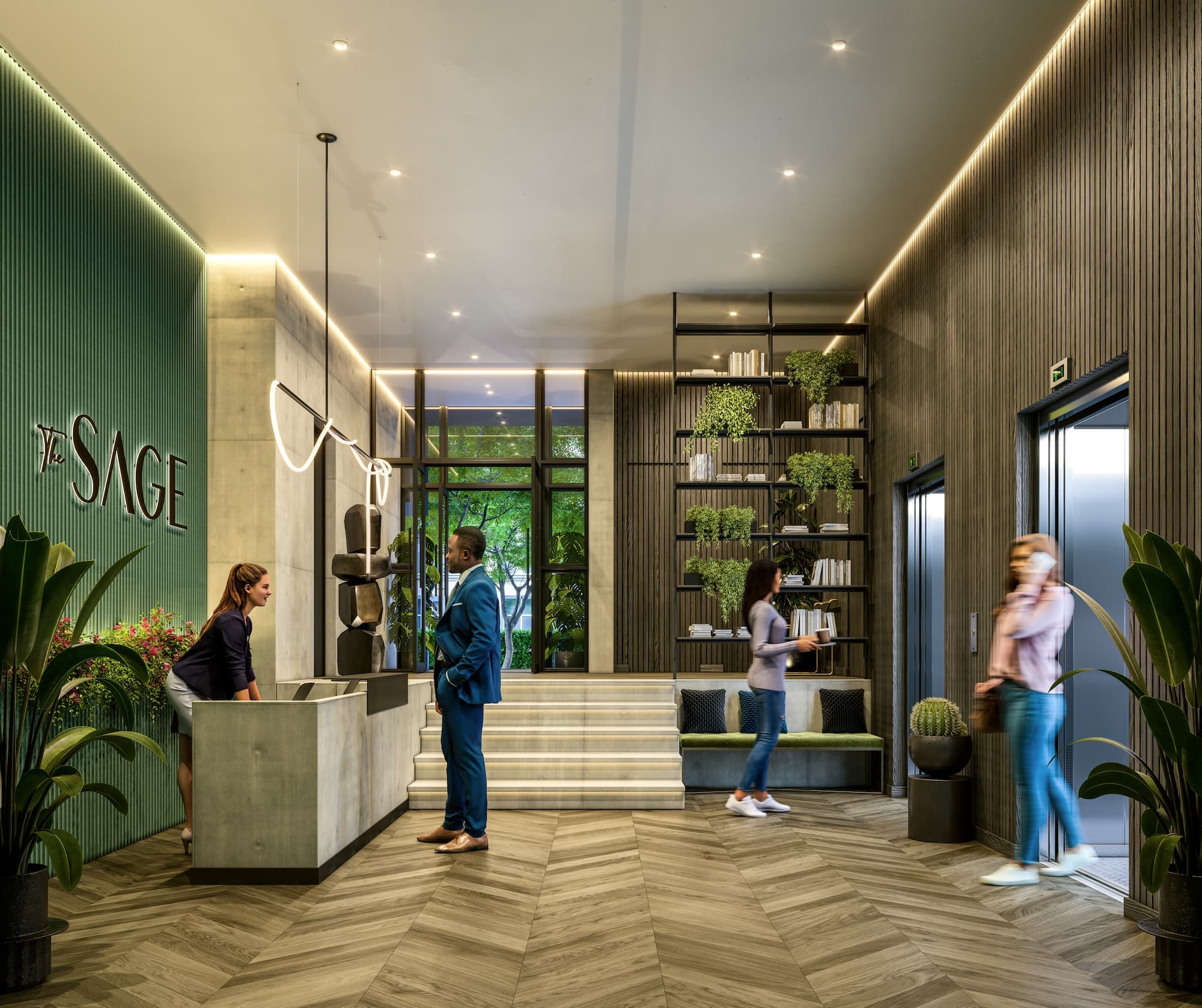 - Ground floor lobby, 24hr concierge, and co-working business lounge